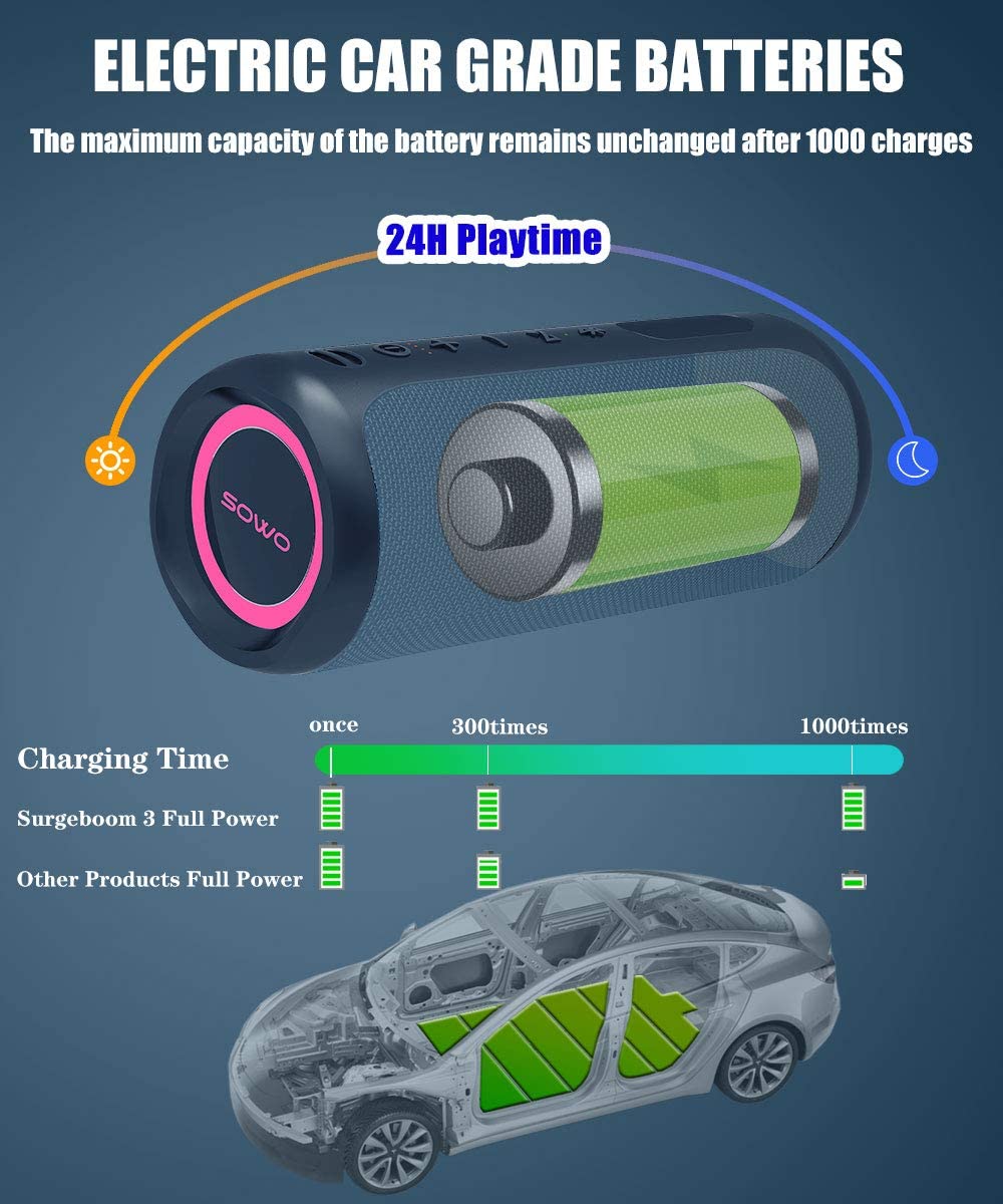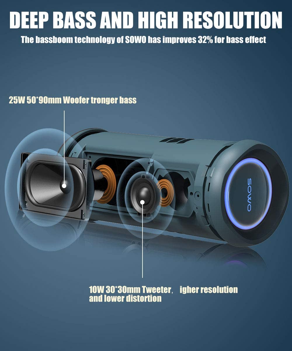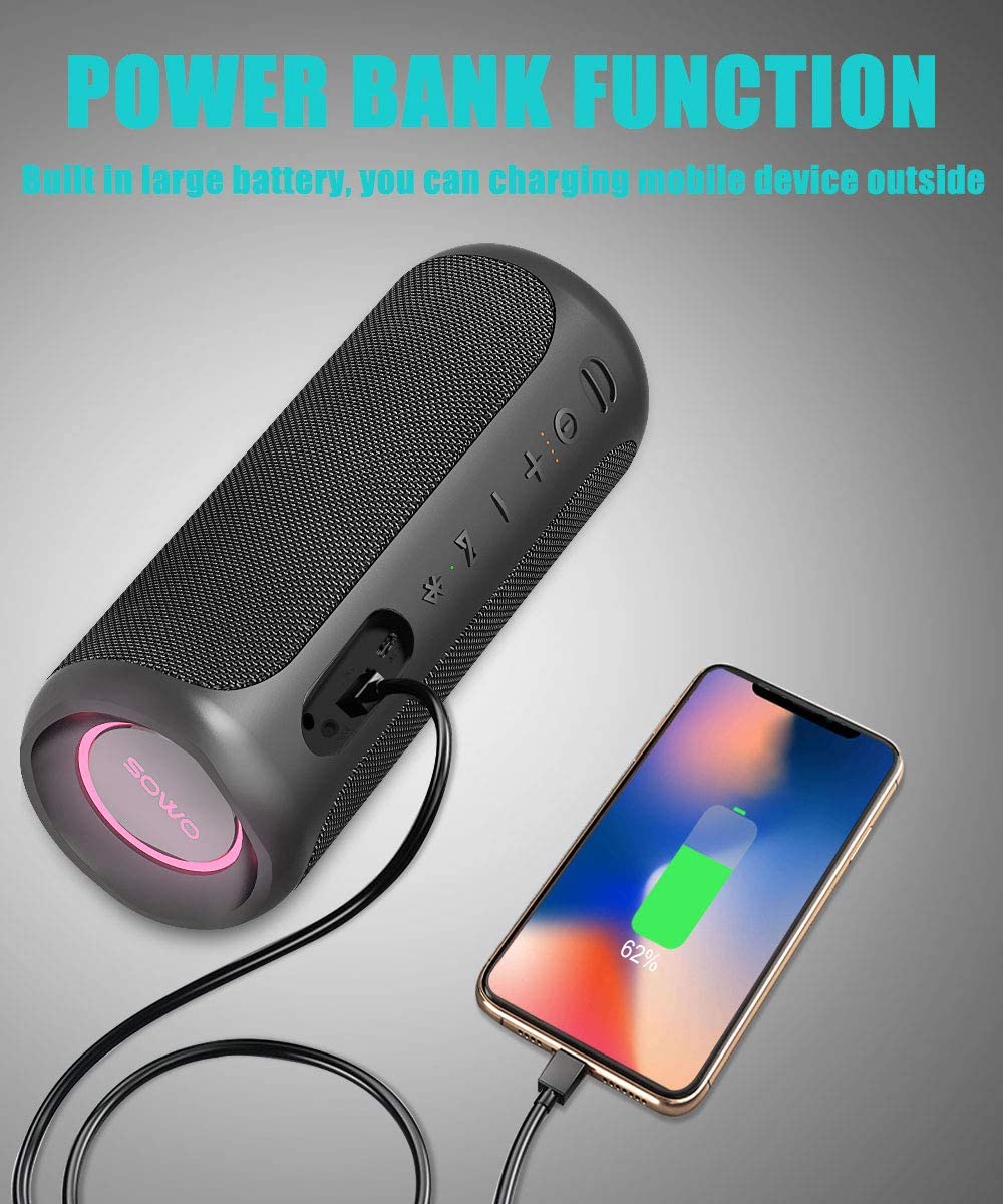 Portable Bluetooth Speaker with Subwoofer, 35W Bass Loud Speaker with Power Bank, IPX7 Waterproof, Wireless Stereo Pairing, 24H Playtime, Speaker with Lights for Outdoor Party, Camping – Black