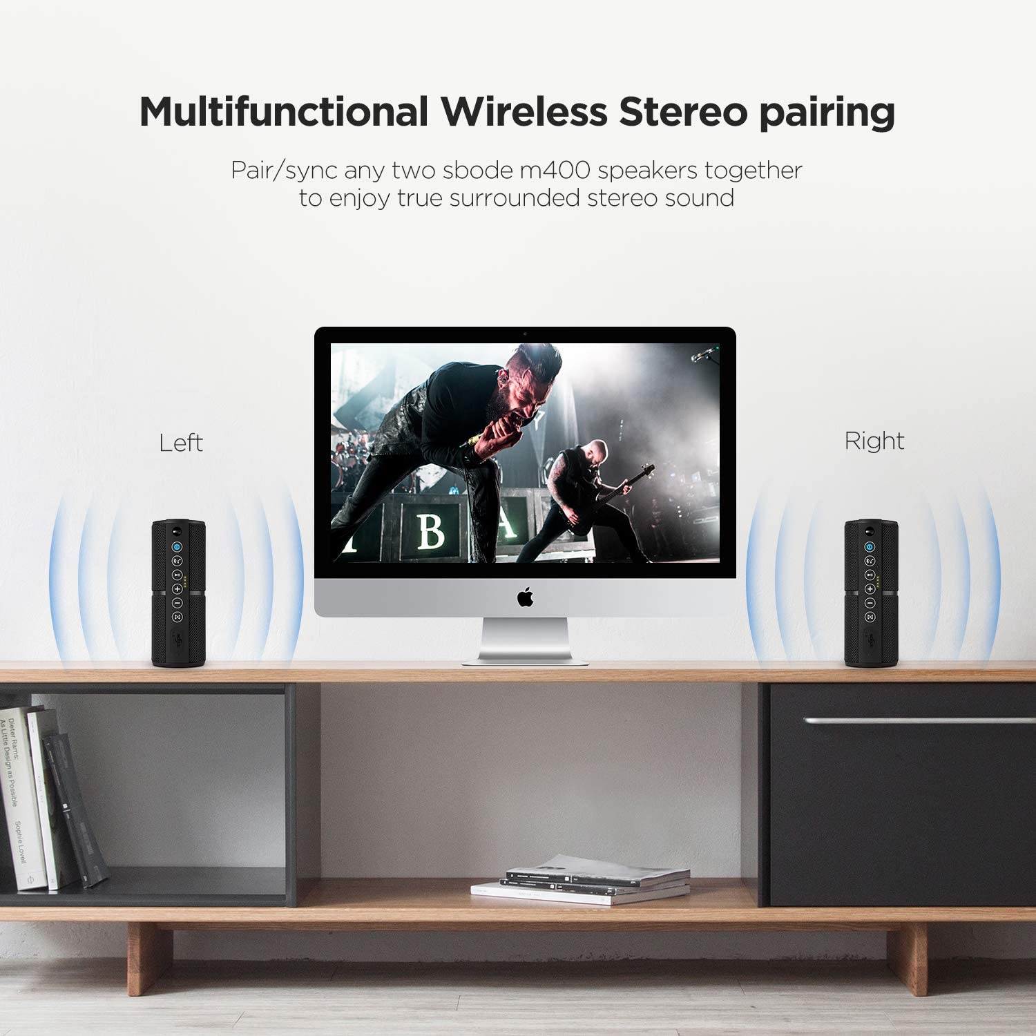 - A This bluetooth speaker is water resistant. It is perfect for the pool party. And it has TWS function, you can pair two Sbode speakers together , then audio can be played in sync on both devices with double enhanced stereo sound. Hope to help you.